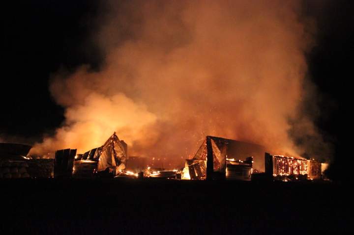 Blaze quickly gets out of control on dairy farm near Hague, Sask.Hague Fire Department Chief Dane Friesen said a blaze on a dairy farm started when a tandem semi hauling manure caught fire.FireMay 30, 2019