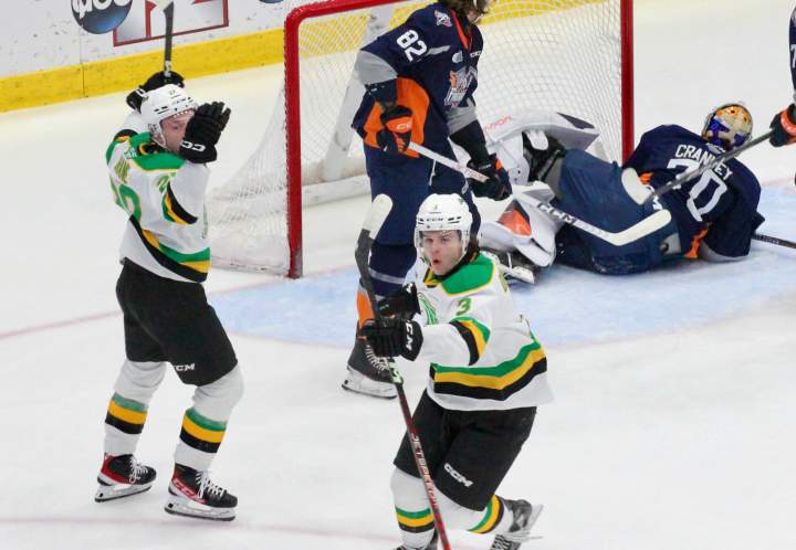 Sarnia Sting deny Knights despite Denver Barkey’s first OHL hat trickThe Sarnia Sting captured the first leg of the Battle of the 402 with a 5-3 victory over the London Knights.SportsOct 14, 2023