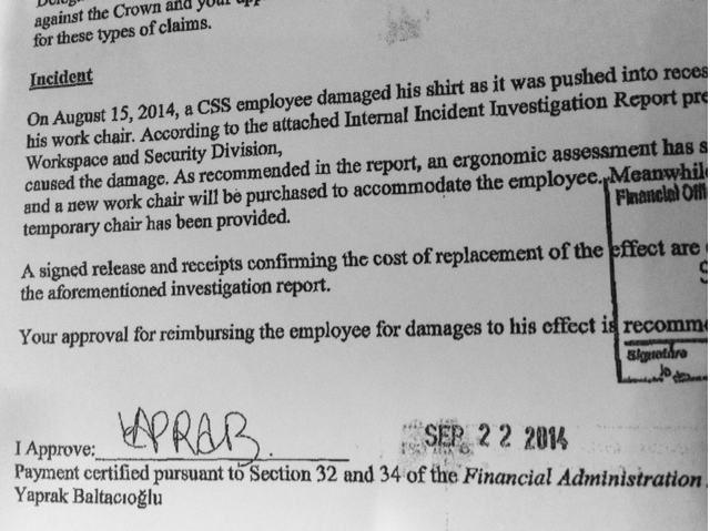 Civil servant gets his shirt in a bunch, investigation ensuesA government chair destroyed the shirt of the federal employee sitting in it leading to an investigation that ended with a $70 payment and absolving the Queen of any responsibility.CanadaMar 18, 2015