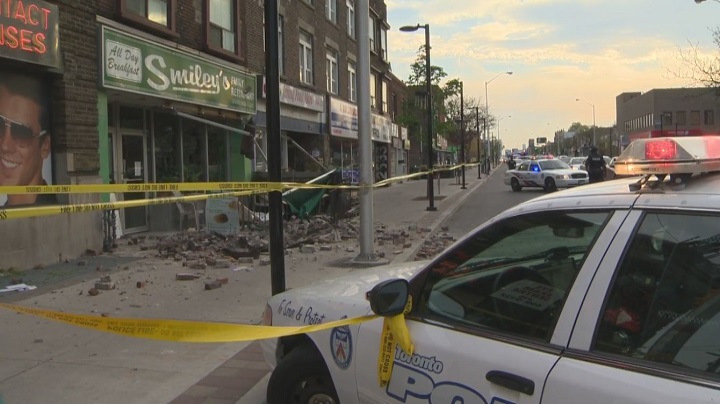 Man injured after bricks fall from Danforth buildingThe man was hit by multiple bricks and an awning covering a restaurant patio.CanadaMay 17, 2017