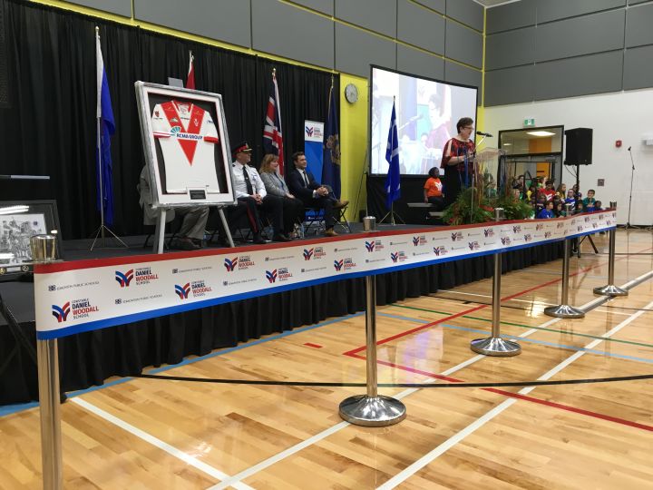 Official opening celebration held for Edmonton school named after fallen police officerClasses already started more than two months ago at Edmonton's Constable Daniel Woodall School but on Wednesday, family and friends of the fallen police officer whose name the school bears were joined by dignitaries and students to celebrate its official opening.CanadaNov 15, 2017