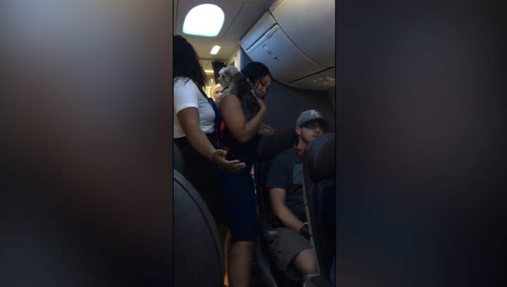 Unruly passenger, loose dog removed from American Airlines flight after confrontation with flight attendantA disruptive passenger was removed from an Atlanta-to-Chicago flight after she was caught on video yelling at a flight attendant while letting her dog run through the cabin.CrimeJul 7, 2017
