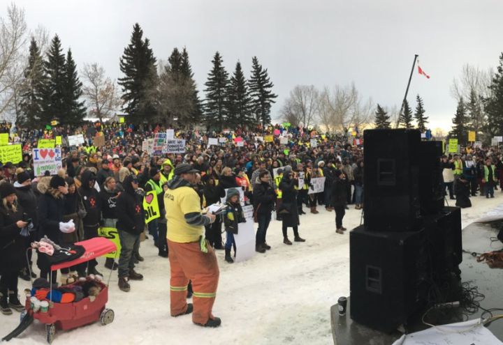 Large crowd gathers in northern Alberta city to rally for oil pipelinesA boisterous crowd, many carrying signs, could be heard chanting "build that pipe," a refrain that was followed by loud cheers.EconomyDec 16, 2018