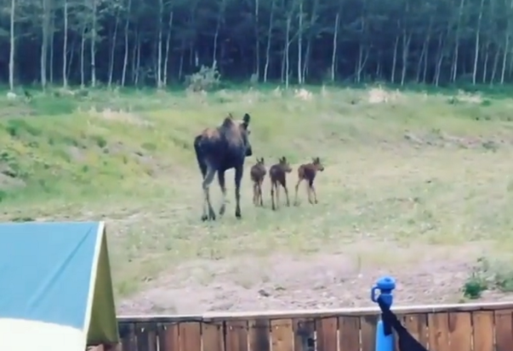 Rare moose triplets caught on video in central AlbertaVideo of a moose and her triplets walking near a backyard in Didsbury, Alta. has already been shared over 10,000 times on Facebook.CanadaJun 1, 2018