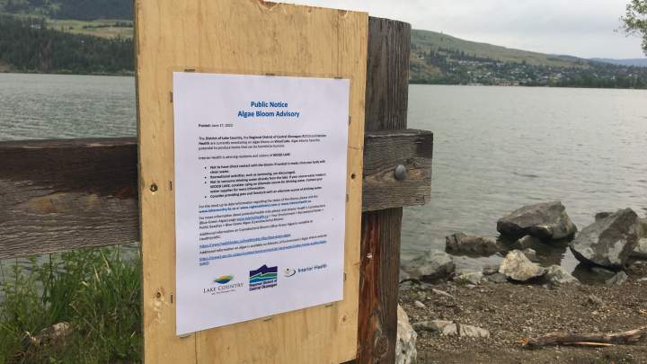 Warning signs posted of algae bloom in Wood Lake, B.C.The public notices say lake users should not make contact with the algae bloom, but, if they do, to rise your body with clean water. Swimming is also discouraged.HealthJun 18, 2022