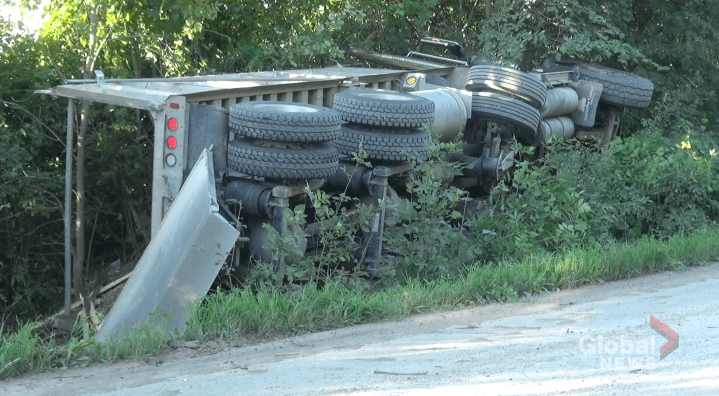 Vehicle reportedly flees scene after dump truck crashes south of Peterborough: OPPEmergency crews responded to a dump truck rollover on Mahood Road in Otonabee-South Monaghan Township on Thursday morning.TrafficAug 13, 2020