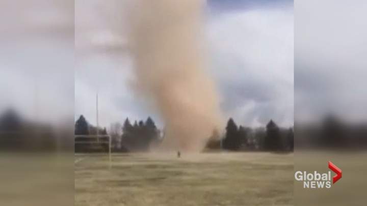 Dust devil caught on video in Sumas Flats area of Abbotsford B.C.Dust devils are very similar to tornadoes, however, they are not associated with thunderstorms and therefore are not as strong and destructive.WeatherMay 17, 2022