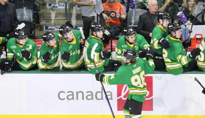 Denver Barkey sparks London Knights to 4-1 win over GuelphDenver Barkey, Jackson Edward and Rusland Gazizov all scored their first goals of the season in a London Knights Thanksgiving weekend win.SportsOct 7, 2023