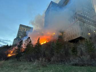Fire crews called to blaze in Edmonton’s river valleyA fire in Edmonton's river valley stretched up to the Courtyard by Marriott's terrace late Thursday evening.FireApr 27, 2023
