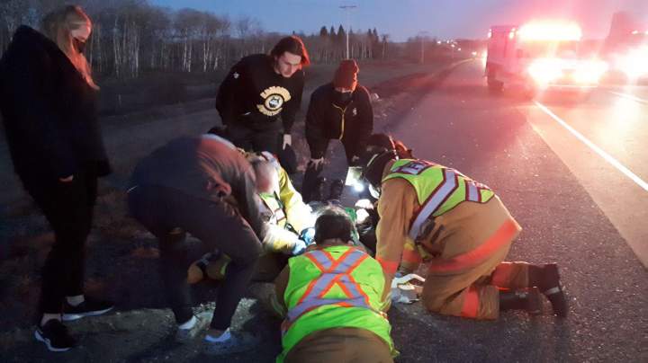 Edmonton Huskies football team help motorcycle crash victim on Saskatchewan highway'We did what any person would do... (but) it really reinforces that team and family aspect that the Huskies have, and it feels nice.'CanadaNov 9, 2021