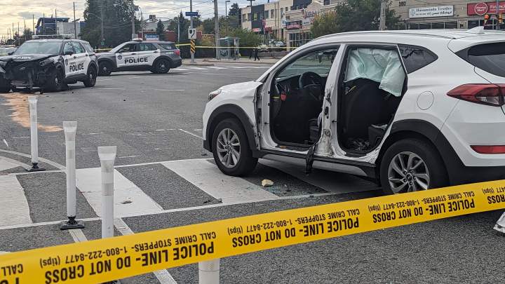 Crash involving Toronto police cruiser sends 2 to hospitalA Toronto police cruiser was involved in a crash around Eglinton Avenue and Markham Road on Saturday, with an officer and the other driver suffering injuries.TrafficOct 14, 2023