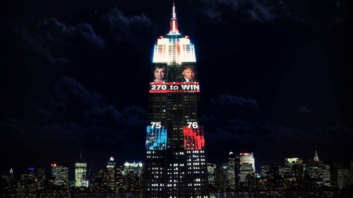 The Empire State Building is providing real-time updates as a giant election trackerPart of the Empire State Building turned into a 32-storey screen showcasing results in real-time for Election Night.NewsNov 8, 2016