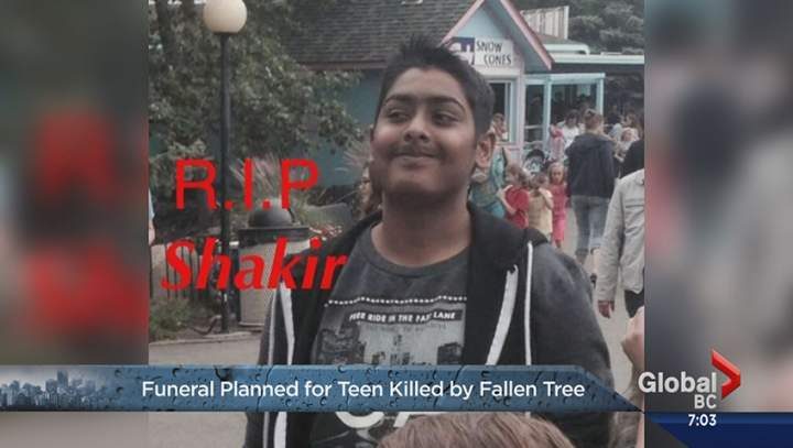 Shakir Salaam, teenager killed in B.C. storm, mourned by family and friendsShakir Salaam was fatally struck by a falling tree near Clayton Heights Secondary around 2:30 p.m.Oct 14, 2016