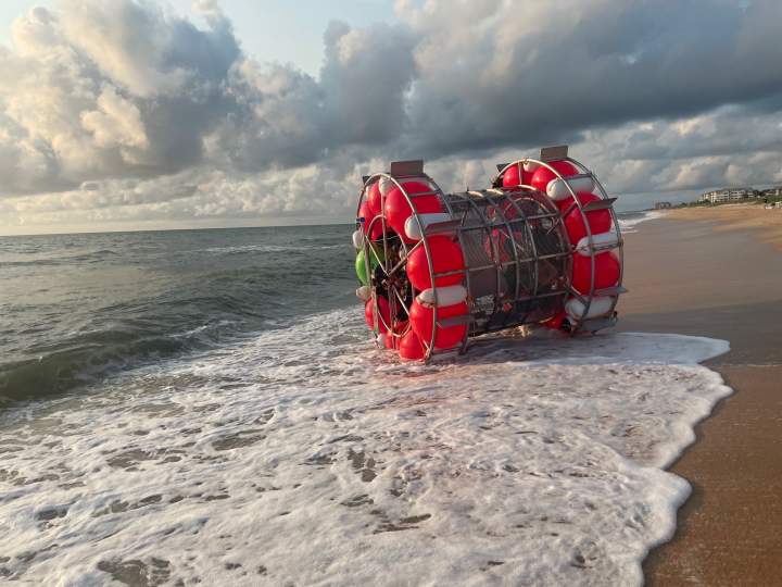 Florida man arrested for trying to cross Atlantic in giant hamster wheelThe vessel was constructed from wiring and buoys and is equipped with paddles that turn as someone runs inside the floating hamster wheel.U.S. NewsSep 7, 2023