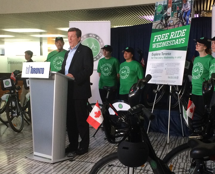 Bike Share Toronto launches free ride Wednesdays in JulyBike Share Toronto users will be able to ride for free on Wednesdays for the entire month of July.CanadaJun 23, 2017