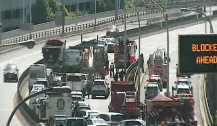 Man dead after crash involving 3 dump trucks on Gardiner ExpresswayThe crash prompted a full closure of the westbound Gardiner Expressway in the area. Police said three dump trucks were involved, one of which caught fire.TrafficJun 11, 2024