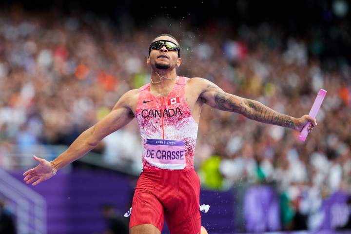 Andre De Grasse and Team Canada win gold in men’s 4×100 relayFriday's gold medal ties Canadian Andre De Grasse with swimmer Penny Oleksiak as the country's most decorated Olympians with seven medals each.CanadaAug 9, 2024
