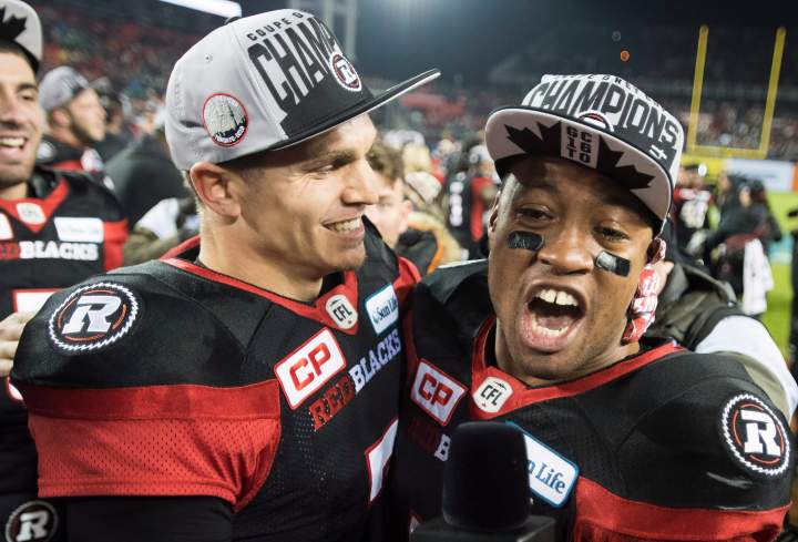 SportsThe Ottawa Redblacks celebrate a 39-33 Grey Cup win over the Calgary Stampeders -