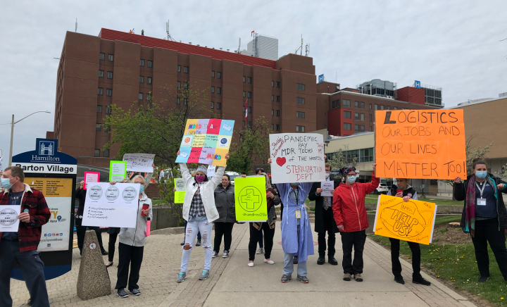 Hamilton Health Sciences employees call for inclusion in coronavirus ‘pandemic pay’Health-care employees in Hamilton want the Ford government to give all front-line workers, including maintenance, clerical and lab staff, the 'pandemic pay' raise.May 14, 2020