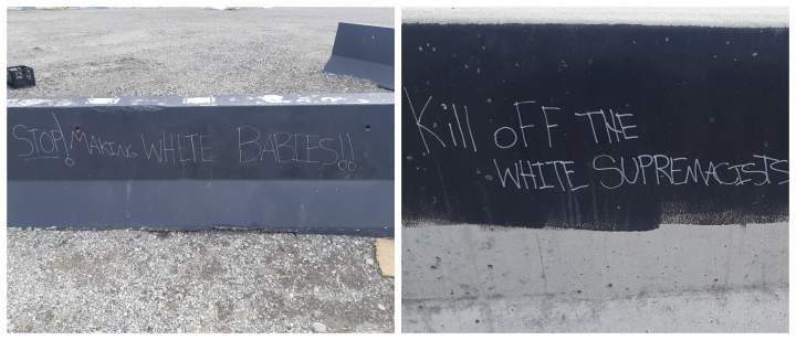 Calgary police investigate ‘racially motivated’ graffitiPolice said three cement barriers were painted with racially motivated slogans on 17 Avenue S.W.CrimeApr 1, 2022