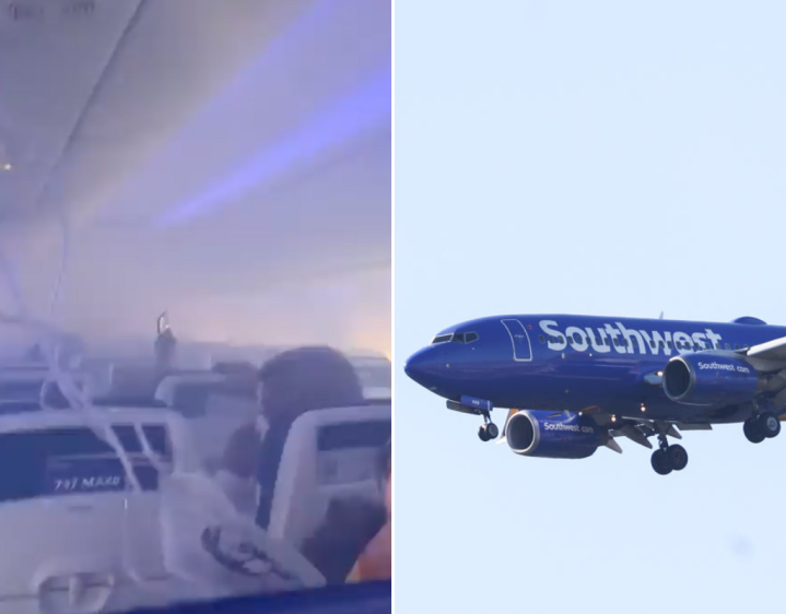 Video captures panic after Southwest flight strikes birds, fills with smokeA Southwest Airlines flight heading to Florida was forced to turn around and make an emergency landing after a group of birds struck the plane's nose and engine.TrendingMar 6, 2023