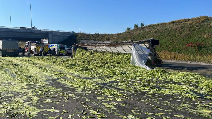 Truckload of celery sticks spills onto Highway 400 in rolloverAn enormous amount of celery sticks has spilled out onto Highway 400 in King Township and police says the highway will be closed for several hours.TrafficOct 3, 2023