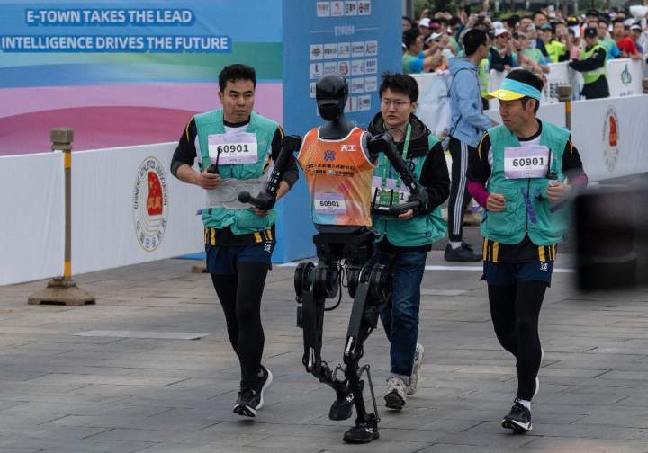 Robots race humans for 1st time in world debut of humanoid half-marathonWhile the 12,000 human participants followed conventional rules and needed to stop at water stations, the 21 machine 'runners' needed battery swap pit stops.TrendingApr 22
