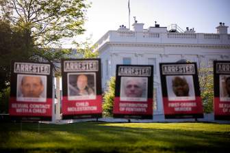 ‘We will hunt you down’: White House lawn posters spotlight arrested migrantsThe hope is that the posters are visible behind journalists as they broadcast from that spot, a White House official said.U.S. NewsApr 29
