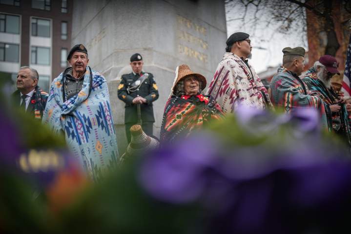 ‘They’re our royalty’: Hundreds march in downtown Vancouver for Indigenous Veterans’ DayCelebrated annually on Nov. 8, Indigenous Veterans Day recognizes the contributions and sacrifices of Indigenous Peoples not only to war efforts, but Canadian peacekeeping as well.CanadaNov 8, 2022