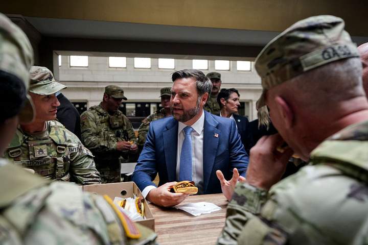 JD Vance brushes off boos, insults as he hands out burgers to troops in D.C.Vance, who was tasked with handing out Shake Shack burgers to military personnel at Union Station in the country's capital, appeared to ignore boos from protesters.TrendingAug 21, 2025