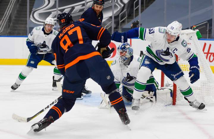 Edmonton Oilers Saturday game postponed after Canucks players, coach enter COVID-19 protocolThe Edmonton Oilers were on the ice at Rogers Place Thursday morning for the first time in 12 days.SportsApr 1, 2021