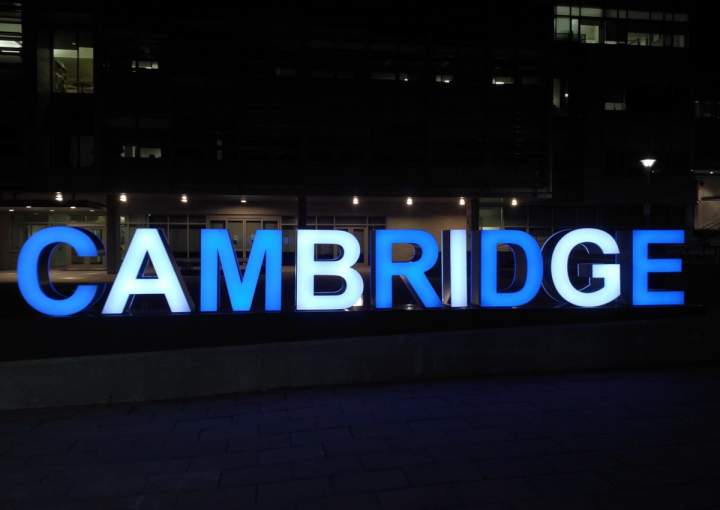 Cambridge sign, pedestrian bridge go blue and white in honour of Danforth shooting victimsThe Cambridge sign and pedestrian bridge were lit blue and white Tuesday night.CrimeJul 25, 2018