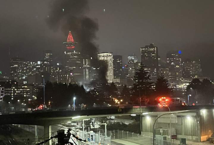 Large early morning fire in South Vancouver creating lots of smokeA large pile of wood and construction material appears to be on fire beside the Fraser River, on Ontario Street, in South Vancouver.FireSep 10, 2022