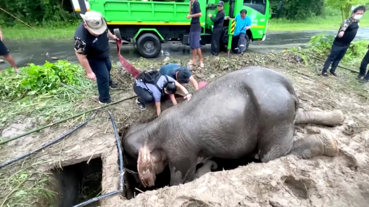 Baby elephant and mother rescued from drain hole in dramatic video at Thai national parkThe three-hour-long rescue operation saw the elephant baby reunited with its mother in the end.TrendingJul 15, 2022
