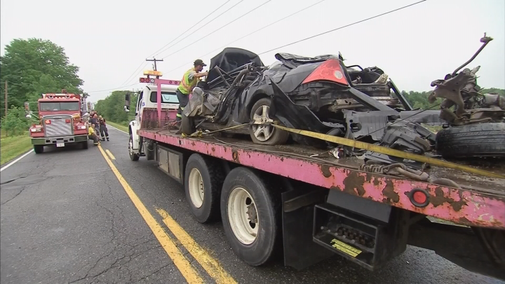 Heavy rainfall causes sinkhole on Lac-Brome road, two injuredA woman in her 70s had to be rescued from her car after driving into the crater in pitch black conditions.TrafficAug 9, 2018