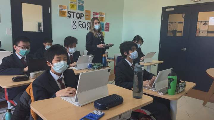 COVID-19: Majority of Montreal students still wearing masks in classroomsDespite the Quebec government announcing masks are no longer required for elementary and high school students in class, the majority of students continue to wear them.CanadaApr 6, 2022
