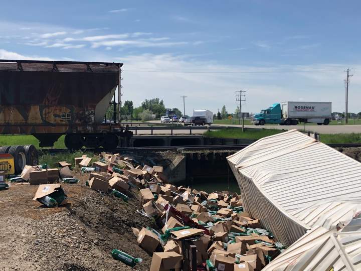 No injuries in collision between train and semi truck east of Lethbridge Friday morningA collision between a train and a semi-truck resulted in no injuries or hazardous materials being spilled on Friday morning just outside of Lethbridge.TrafficJun 5, 2020
