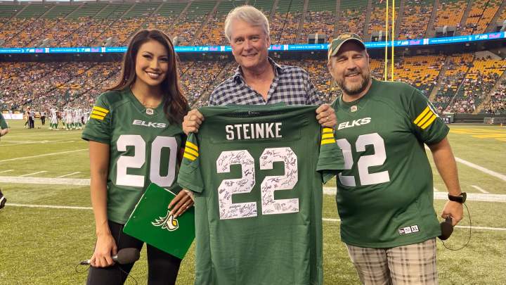 Global’s Gord Steinke receives honourary Edmonton Elks jersey as retirement giftThe beloved Edmonton journalist will have his last day behind the broadcast desk on Aug. 31.CanadaAug 13, 2022