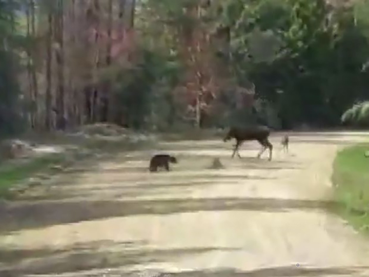B.C. wildlife: Forestry worker films moose chasing black bear away from her calvesEthan Fell told Global News he was travelling along Smythe Road, near Mabel Lake in the Okanagan, when he saw a bear chasing three moose.CanadaJun 11, 2022
