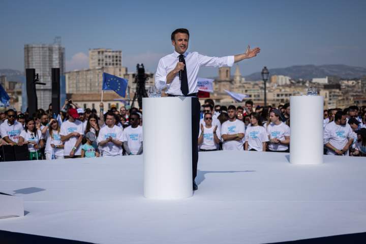 Macron holds major campaign rally in Marseille, touts climate accomplishmentsFrench President Emmanuel Macron held a major campaign rally Saturday in Marseille, touting his environmental and climate accomplishments.WorldApr 16, 2022