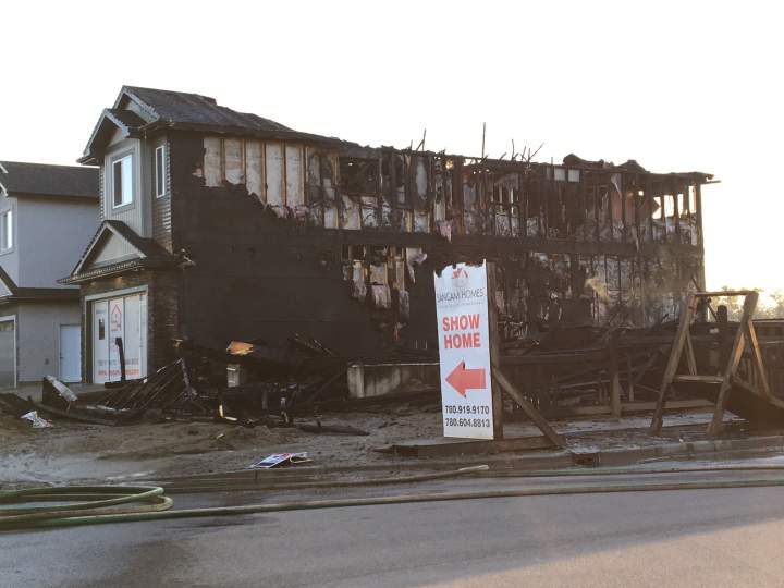 Fire destroys 2 show homes in northeast Edmonton’s McConachie areaTwo show homes in northeast Edmonton's McConachie area went up in flames early Sunday morning, leaving one burned to the ground and another heavily damaged.CanadaJun 3, 2018