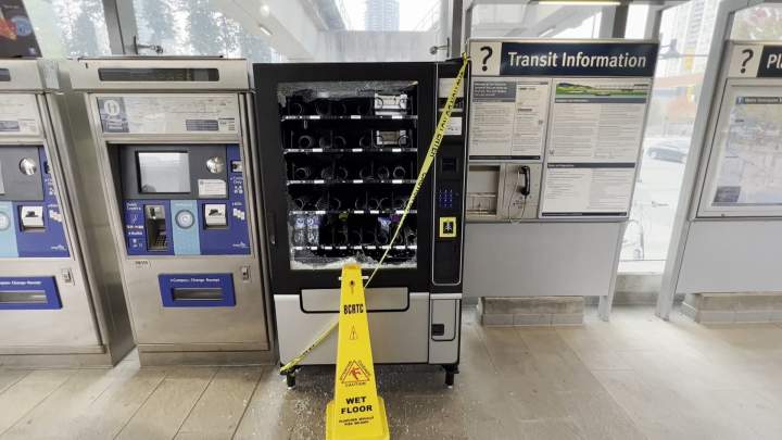 New sushi vending machine smashed at Lower Mainland SkyTrain stationTransLink said more machines will be placed at stations along the Expo and Evergreen Line during the 12-month pilot project.CrimeAug 25, 2023