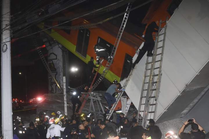At least 24 killed after overpass carrying train cars collapses in Mexico CityRoughly 70 people were also injured after the overpass fell onto cars on a road below, sending the train cars down with it.WorldMay 3, 2021