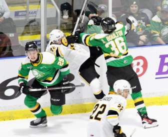 Sarnia Sting deny Knights despite Denver Barkey’s first OHL hat trickThe Sarnia Sting captured the first leg of the Battle of the 402 with a 5-3 victory over the London Knights.SportsOct 14, 2023