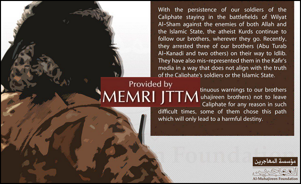 Families want government to bring back 16 Canadians held by Kurdish forces in SyriaThe pro-ISIS Al-Muhajireen Foundation has released a statement cautioning foreign fighters “not to leave the lands of the Caliphate for any reason in such difficult times.”CanadaOct 25, 2018