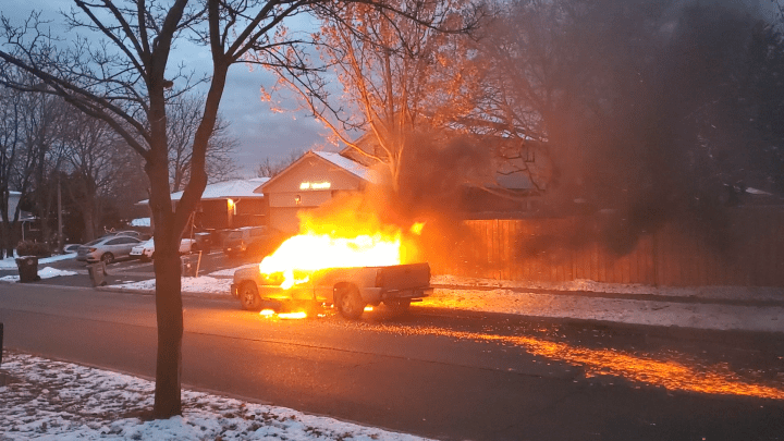 Video shows stolen pickup engulfed in flames in Mississauga neighbourhoodVideo shot by Global News shows a stolen pickup truck engulfed in flames in a Mississauga neighbourhood Thursday morning.CrimeDec 15, 2022