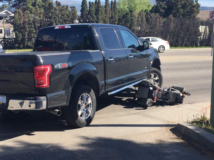 Mobility scooter user suffers life-threatening injuries after vehicle collision in SurreyThe scooter ended up underneath the front of the pickup truck, which mounted the curb.Oct 26, 2019