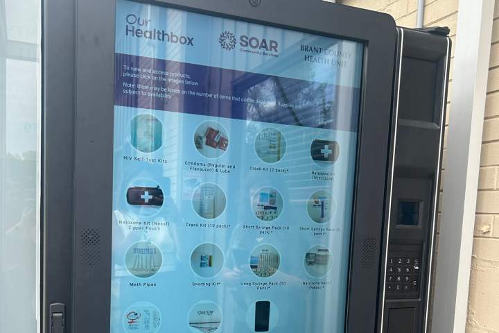New vending machine offering drug pipes, naloxone kits, third of its kind in OntarioThe Our Healthbox machine in Brantford, Ont. offers a wide range of harm reduction supplies such as condoms, naloxone kits, pipes and HIV testing kits.HealthJun 21, 2024