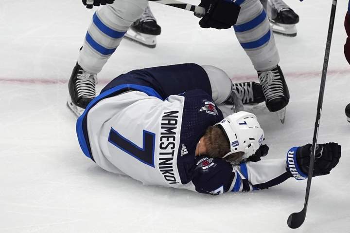Jets forward Vladislav Namestnikov suffers fractured cheekbone after puck to faceJets coach Rick Bowness said that Namestnikov stayed overnight in Denver and was returning to Winnipeg on Monday.SportsApr 29, 2024