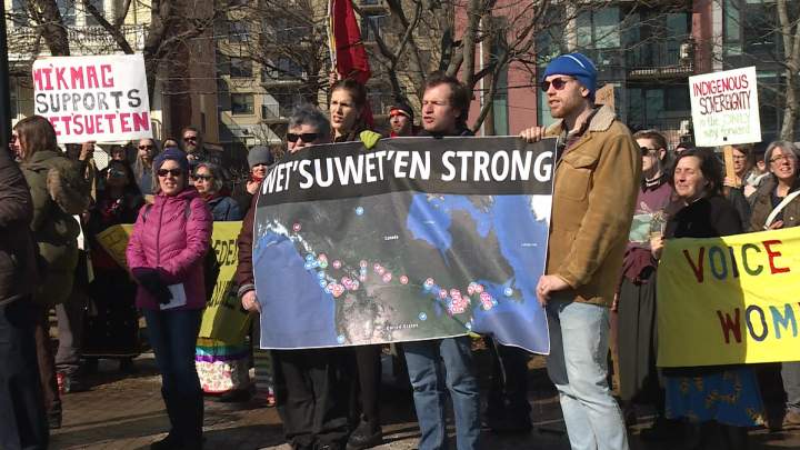 Supporters of Wet’suwet’en hereditary chiefs and Indigenous rights flood downtown HalifaxHundreds stood shoulder to shoulder as the rally began, listening to speakers express their concerns over the Coastal GasLink project in the Wet'suwet'en Nation and the Alton Gas project on unceded Indigenous land in Fort Ellis, N.S., on the banks of the Shubenacadie River.PoliticsFeb 23, 2020